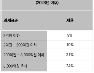 | 세율 | 6 ~ 45% | 9 ~ 24% |