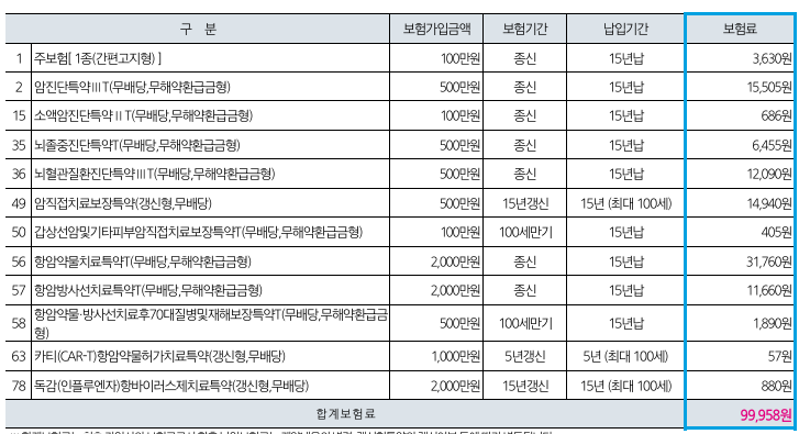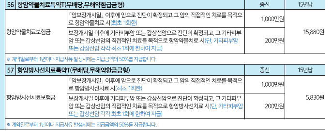 예시 : 58번 항암방사선 치료 : 매달 5,830원으로 1,000만원 보상금 사는 것입니다. 싸죠