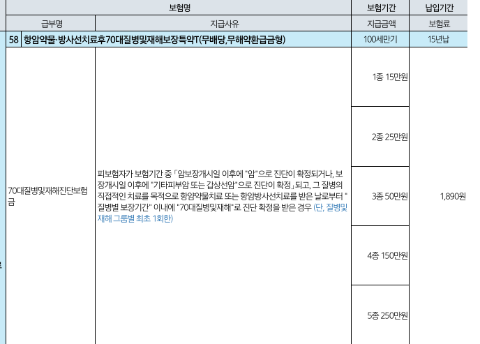 ♪ A형과 동일한데 단지 항암약물과 항암방사선 금액을 2배 높였고
